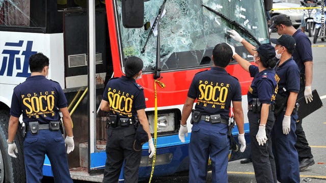 First, some background on what happened. A year ago, a former senior police inspector, Rolando Mendoza, was accused leading a group of four officers in beating a 25 year-old chef, forcing him to ingest shabu (like crack), arresting him and making him pay 20,000 pesos (USD ~$400) for his freedom. The father of the chef reported the case to the internal affairs office of the police department, who investigated the case. After harassment from the police, the chef withdrew his complaint, but the police ombudsman picked it up and fired the four officers and inspector Mendoza. Fast forward to two days ago, when Mendoza flags down a bus filled with Hong Kong tourists and asks for a ride somewhere. He then takes over the bus with an M-16, demanding the charges against him be dropped. After 11 hours of failed negotiations and a very public and very pathetic attempt by the police at storming the bus, Mendoza sprayed the bus with bullets, killing 8 people, including women and children.