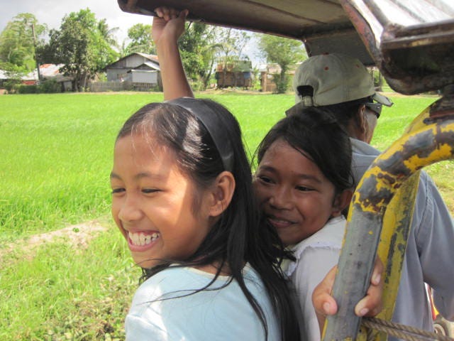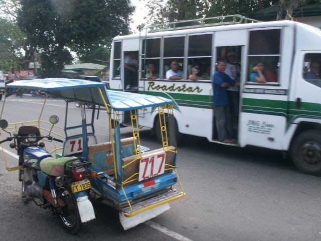 For the more rural traveler, the tricycle will get you where you need to go. Unlike the smaller, more childish version to which most people are accustomed, Filipino tricycles have a sidecar attached to a motorbike. It is designed for two, but I have seen no less than eight people riding through the rural areas. This may seem crazy, but it becomes more reasonable once you have seen a family of five on a single motorbike in Phnom Penh.