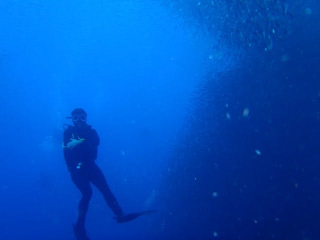 The next morning, I got up early and took a bus to Moalboal, a town two hours south that someone recommended in Coron. Twenty meters below the surface of the ocean, surrounded by millions of sardines off the coast of Pescadero Island, the decision to re-write the plan was validated.