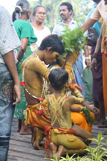 After a half-hour, I felt like moving on, but my friend insisted we stay for a few more minutes. Suddenly, hundreds of people came marching into the park, followed by drummers and people carrying a statue of a Hindu god. What followed blew my mind. The people in yellow began going into violent trances, and had to be restrained by others. I saw an old woman knocked to the ground by a young woman flailing her arms wildly. A kid my age pierced his tongue with a miniature trident, while people were chanting loudly. Eventually, the procession led out of the park and into a nearby field, where a bed of hot coals had been laid out. A test of the faithful, apparently.