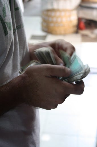 Counting kyats in Burma