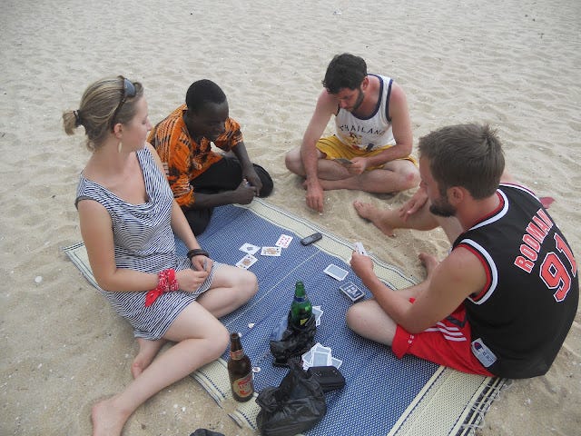 I made a friend at the guesthouse, and my buddy and his girlfriend came down from Winneba to a few nights there after a village stay with a farmer fell through. The water was nice, the bar was stocked, the food was good, and, by pure chance, I happened to have a few friends around. Why spoil a good thing?